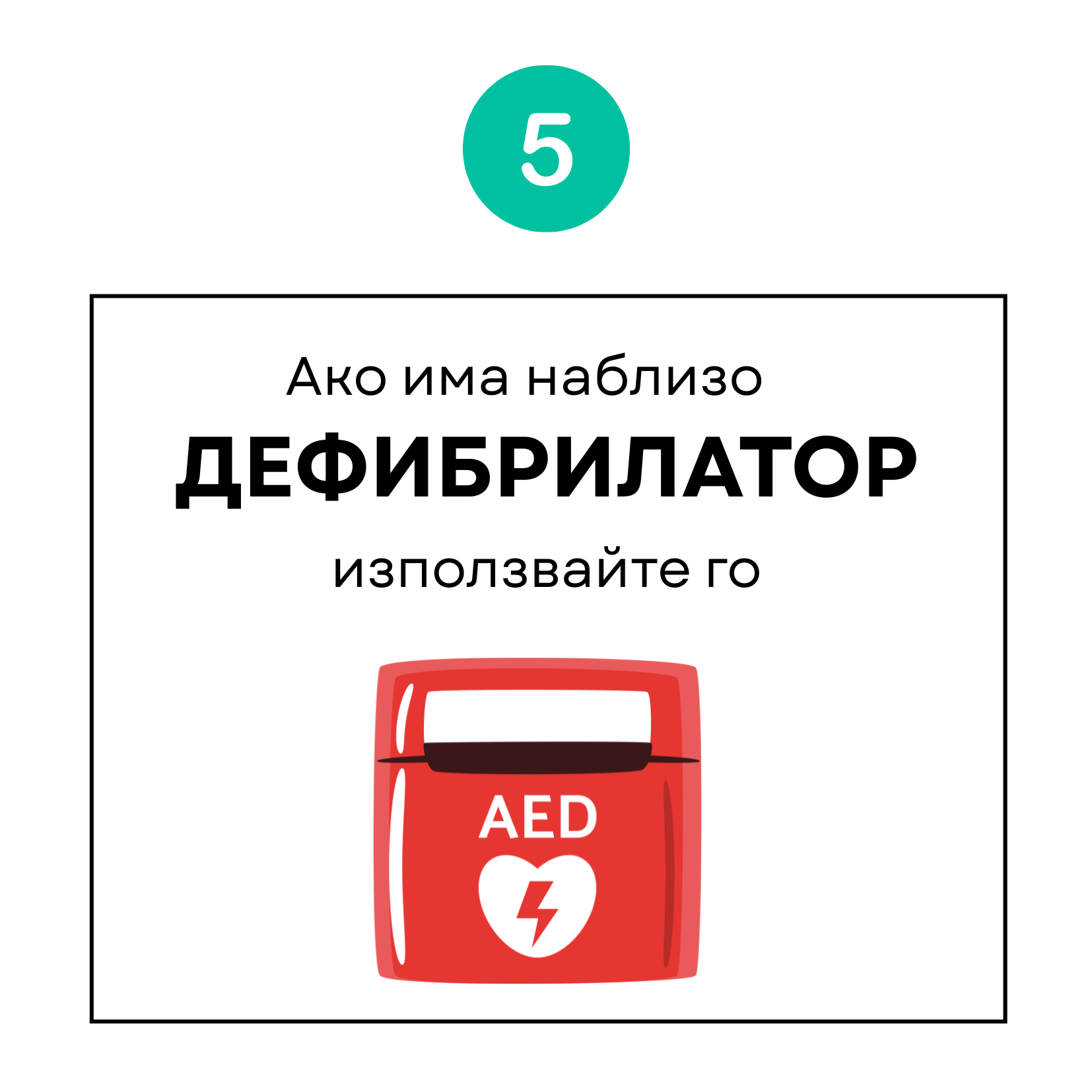 Ако има дефибрилатор (АВД/AED) - използвайте го възможно най-бързо